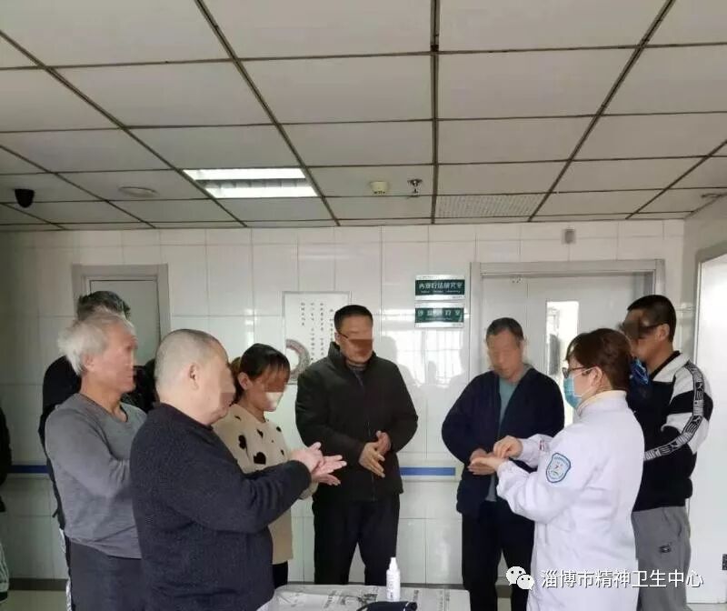 淄博市精神衛(wèi)生中心臨床心理科一病區(qū)采取半開放管理模式,住院患者多且集中,部分老年患者體弱,抵抗力差,再加之患者自我照顧能力和自我保護(hù)能力差。在新型冠狀病毒感染的肺炎防控期間,為嚴(yán)防疫情蔓延,保證患者的生命安全,科室暫時取消家屬探視及患者外出。隨著疫情的發(fā)展,上述舉措也引起了住院患者的一些負(fù)面情緒和心身不適,如焦慮、失眠、無助、恐懼、抱怨等等。采取佩戴口罩、做好手衛(wèi)生這些身體防護(hù)的同時,患者心理上的防護(hù)也同樣重要??剖曳e極鼓勵患者跟家人電話或視頻聯(lián)系,讓他們感到疫情下的家庭溫暖;并通過健康宣教活動,教會患者正確佩戴口罩、熟練掌握七步洗手法,養(yǎng)成勤洗手的好習(xí)慣。