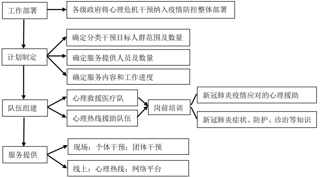 圖2 新型冠狀病毒肺炎疫情緊急心理危機(jī)干預(yù)組織實(shí)施框架圖